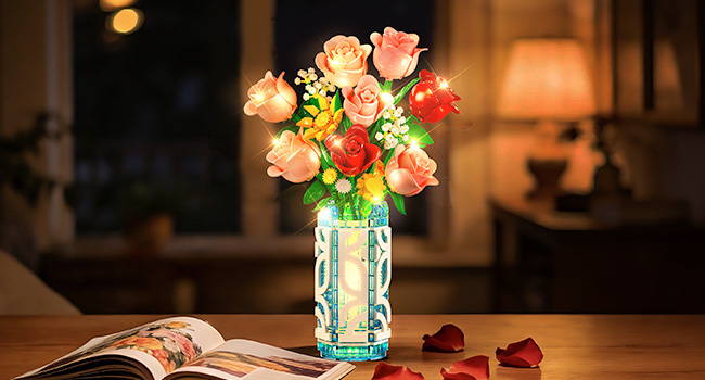 This rose building set transcends traditional bouquets with an LED light strip. Watch as your vase transforms into a glowing centerpiece, casting a warm, enchanting glow that enhances any room's ambiance.
